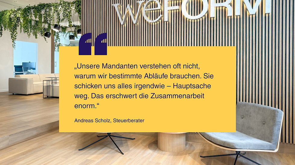 Mitarbeitende werden entlastet, weil Aufgaben einheitlich und digital ablaufen. Zuständigkeiten sind eindeutig geregelt. Mandanten verstehen endlich, wie die Zusammenarbeit funktioniert – Missverständnisse und Rückfragen gehen zurück.